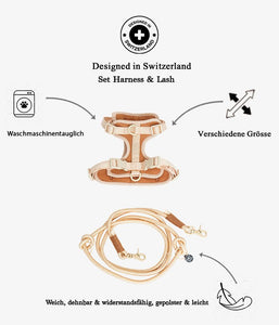 Swiss design meets soft performance Each PET & Co. harness is thoughtfully designed in Switzerland with a focus on comfort, function & timeless aesthetics. The monochrome neoprene offers a soft, cushioned feel while remaining lightweight and easy to care for. High-quality metal hardware provides safety and long-lasting durability. The calm color palette and minimal branding blend seamlessly with modern interiors and everyday style. A set that looks beautiful and feels good – every day.