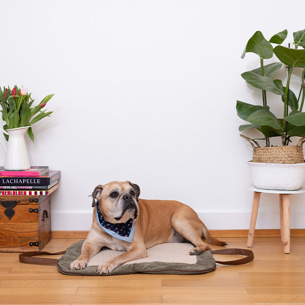 Charly Cord – Luxus-Reisematte für Hunde in Khaki